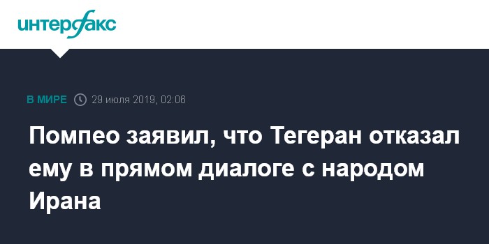 "Недавно я предложил поехать в Тегеран и поговорить непосредственно с иранским народом. Режим не принял мое предложение ", - написал Помпео в твиттере.