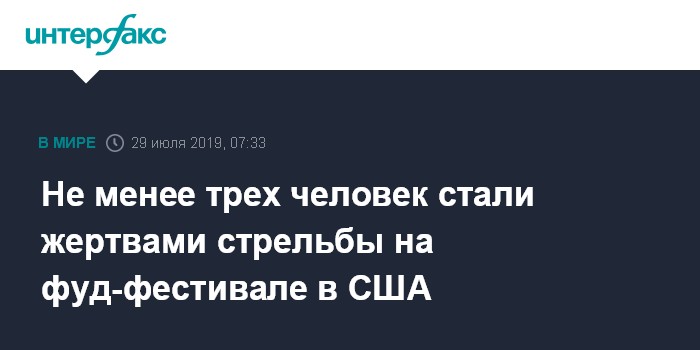 Москва. 29 июля. INTERFAX.RU - Три человека погибли и 12 пострадали в результате стрельбы на фуд-фестивале Garlic Festival в городе Гилрое в Калифорнии, сообщил Associated Press мэр города Дион Бракко.