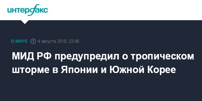 МИД РФ предупредил о тропическом шторме в Японии и Южной Корее