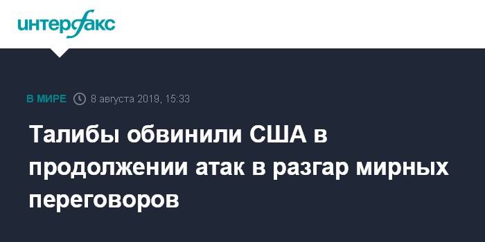 Москва. 8 августа. INTERFAX.RU - Лидер запрещенного в РФ движения "Талибан" Мулави Хайбатулла Ахунзада обвинил США в усилившихся атаках в Афганистане и усомнился в стремлении США к мирному процессу в стране, сообщает в четверг агентство ЭФЭ.