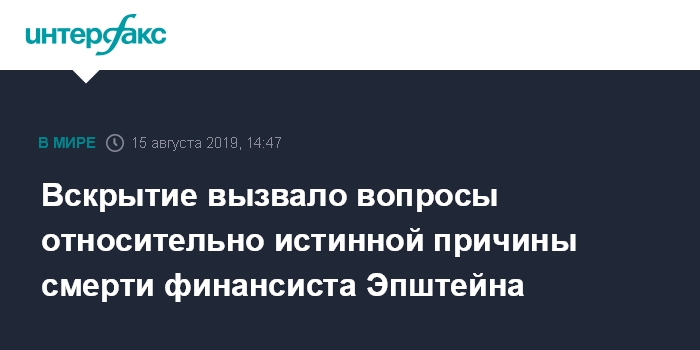 Вскрытие вызвало вопросы относительно истинной причины смерти финансиста Эпштейна