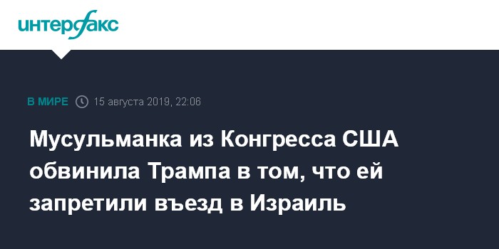 Ранее в четверг власти Израиля запретили въезд в страну двум членам конгресса США, представляющим Демократическую партию - Омар и Тлаиб, из-за с антиизраильских высказываний конгрессменов.