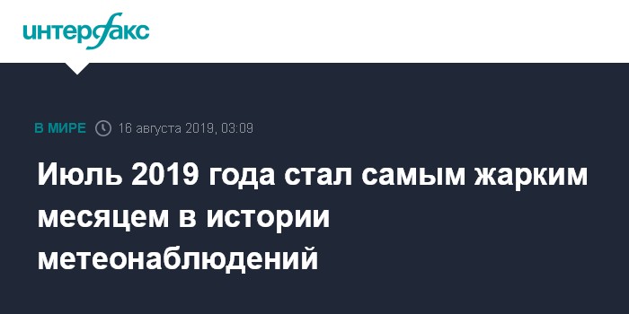 Июль 2019 года стал самым жарким месяцем в истории метеонаблюдений