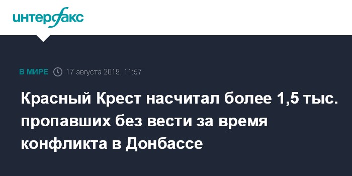 Москва. 17 августа. INTERFAX.RU - За время конфликта в Донбассе без вести пропали более 1500 человек, заявил в субботу глава Донецкого офиса Международного Комитета Красного Креста (МККК) Сирил Жорена.
