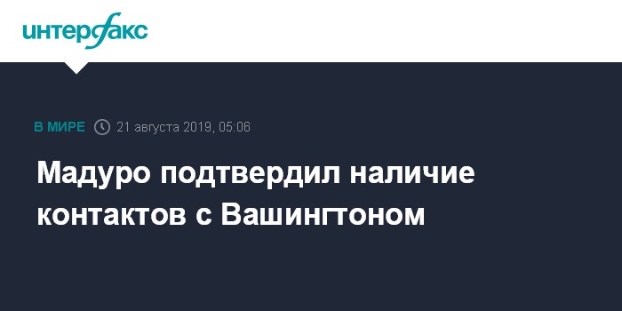 Москва. 21 августа. INTERFAX.RU - Президент Венесуэлы Николас Мадуро подтвердил, что его представители "месяцами" поддерживают контакты с администрацией американского президента Дональда Трампа.
