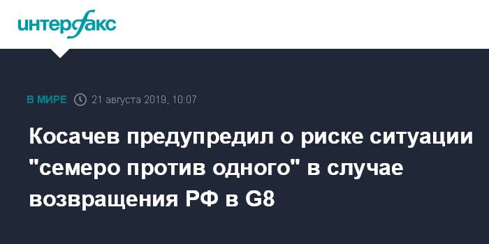 Косачев предупредил о риске ситуации "семеро против одного" в случае возвращения РФ в G8