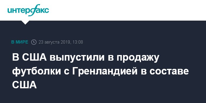 Москва. 23 августа. INTERFAX.RU - Национальный комитет Республиканской партии США выпустил ограниченным тиражом партию футболок с картой США, в состав которых уже входит Гренландия. Об этом говорится на сайте комитета.