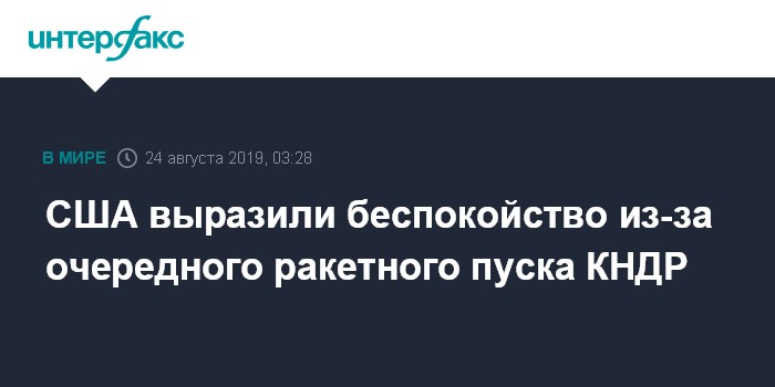 Москва. 24 августа. INTERFAX.RU - США заявили об обеспокоенности пуском ракет, который Северная Корея осуществила в ночь на субботу, сообщило агентство Yonhap из Вашингтона со ссылкой на американского правительственного чиновника.