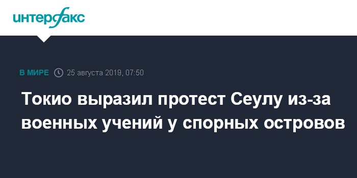 Москва. 25 августа. INTERFAX.RU - Японское правительство выразило дипломатический протест властям Республики Корея на фоне военных учений южнокорейских ВМС у островов Такэсима, передает агентство Kyodo.