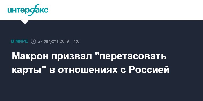 "Я убежден, что нам нужно очень тщательно "перетасовать карты", налаживая честный и требовательный диалог с Россией", - сказал он в ходе выступления, посвященного вопросам внешней политики Франции. По словам Макрона, это необходимо, в частности, для выстраивания общеевропейской стратегии в отношении РФ.