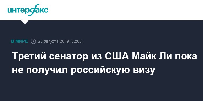 Москва. 28 августа. INTERFAX.RU - Сенатор-республиканец от штата Юта Майк Ли подал документы на получение визы для въезда в Россию, но пока ее не получил, сообщает Politico.