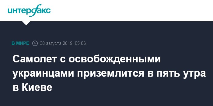 Москва. 30 августа. INTERFAX.RU - Самолет с освобожденными украинцами рано утром в пятницу должен прилететь в Киев, сообщил главный редактор "Эхо Москвы" Алексей Венедиктов.