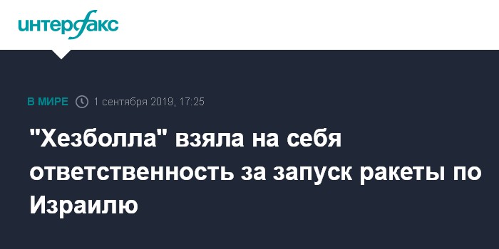 Москва. 1 сентября. INTERFAX.RU - Ливанская группировка "Хезболла" взяла на себя ответственность за запуск ракеты по северной части Израиля, пишет The Times of Israel.