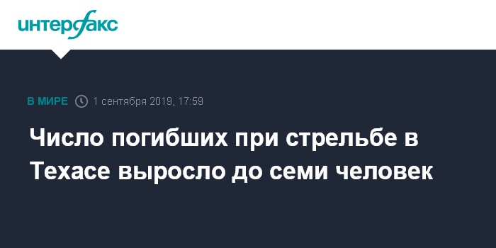 Москва. 1 сентября. INTERFAX.RU - Число жертв стрельбы в американском городе Одесса в штате Техас возросло до семи человек, сообщает в воскресенье Associated Press.