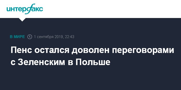 Москва. 1 сентября. INTERFAX.RU -Вице-президент США Майк Пенс в воскресенье заявил, что остался доволен переговорами с президентом Украины Владимиром Зеленским, состоявшимися в Польше.