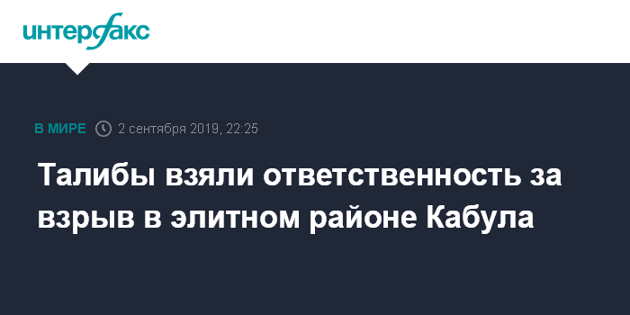 Москва. 2 сентября. INTERFAX.RU - Террористическая организация "Талибан" (запрещена в РФ) взяла на себя ответственность за взрыв в элитном районе Кабула Грин Вилидж, где проживают работающие в Афганистане иностранные специалисты.