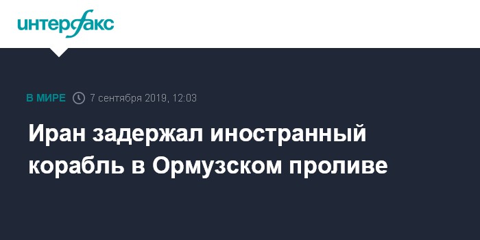 Москва. 7 сентября. INTERFAX.RU - Береговая охрана Ирана задержала иностранное судно с 12 филиппинцами на борту в районе Ормузского пролива, сообщает Associated Press в субботу со ссылкой на иранское информационное агентство ISNA.