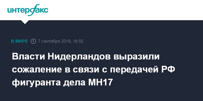 Власти Нидерландов выразили сожаление в связи с передачей РФ фигуранта дела MH17