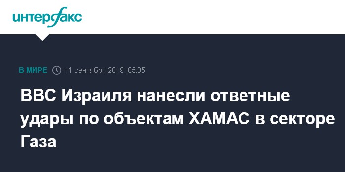 Москва. 11 сентября. INTERFAX.RU - Израильские самолеты нанесли удары по Газе в среду через несколько часов после того, как две ракеты были выпущены из анклава в сторону Израиля.