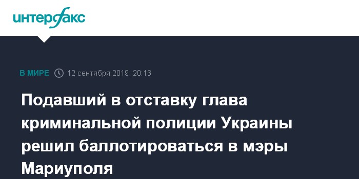 Подавший в отставку глава криминальной полиции Украины решил баллотироваться в мэры Мариуполя