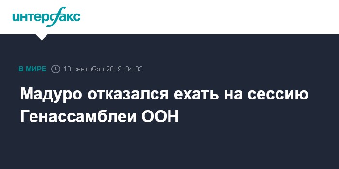 Москва. 13 сентября. INTERFAX.RU - Президент Венесуэлы Николас Мадуро объявил, что в нынешнем году на сессии Генассамблеи ООН в Нью-Йорке страну вместо него будут представлять вице-президент Делси Родригес и министр иностранных дел Хорхе Арреаса.