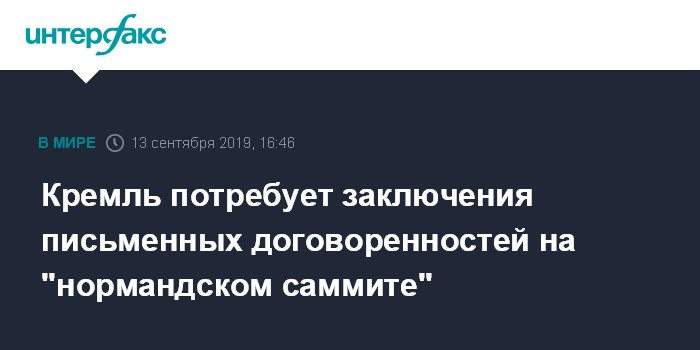 Кремль потребует заключения письменных договоренностей на "нормандском саммите"