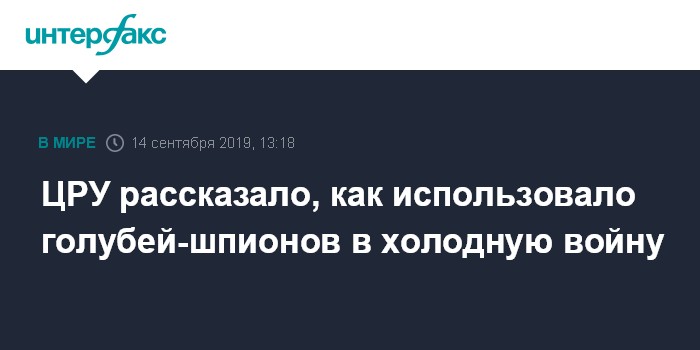Москва. 14 сентября. INTERFAX.RU - ЦРУ США рассекретило детали своих операций времен холодной войны, в которых использовались голуби, сообщает "Би-би-си".