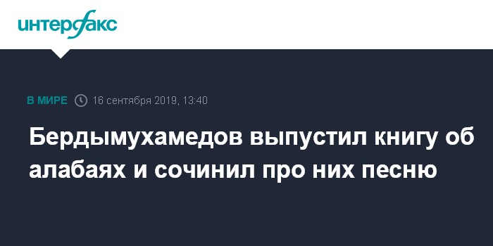 Москва. 16 сентября. INTERFAX.RU - В Ашхабаде прошла презентация книги президента Туркменистана Гурбангулы Бердымухамедова "Туркменский алабай", сообщило Государственное информационное агентство Туркменистана. Там также прошла премьера одноименной песни на стихи главы государства.