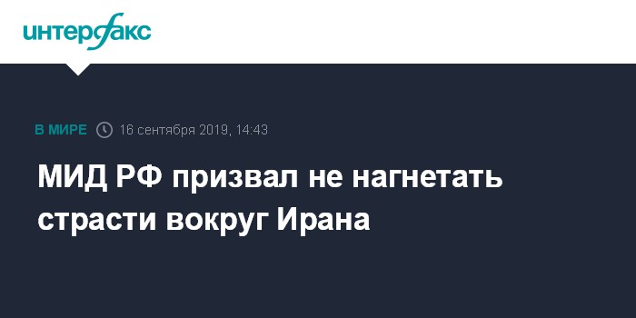 Москва. 16 сентября. INTERFAX.RU - МИД России посоветовал не спешить с выводами о том, кто стоит за атакой беспилотников на нефтяные объекты Саудовской Аравии и не использовать случившееся "для нагнетания страстей вокруг Ирана в русле известной линии США". Об этом говорится в официальном комментарии ведомства.