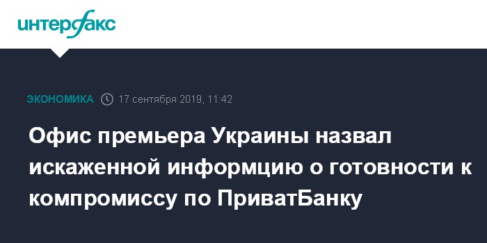 Офис премьера Украины назвал искаженной информцию о готовности к компромиссу по ПриватБанку