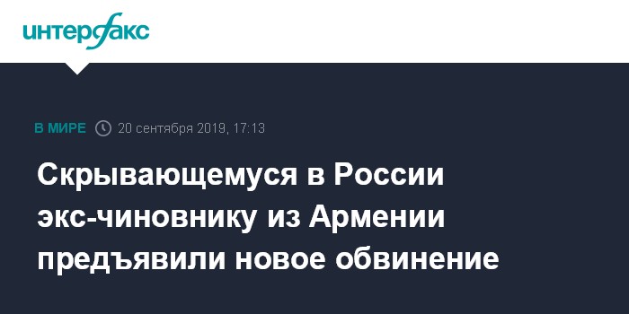 Москва. 20 сентября. INTERFAX.RU - Находящийся в России и скрывающийся от следствия бывший руководитель Службы принудительного исполнения судебных актов Армении (СПИСА) Мигран Погосян привлечен в качестве обвиняемого по новому уголовному делу.