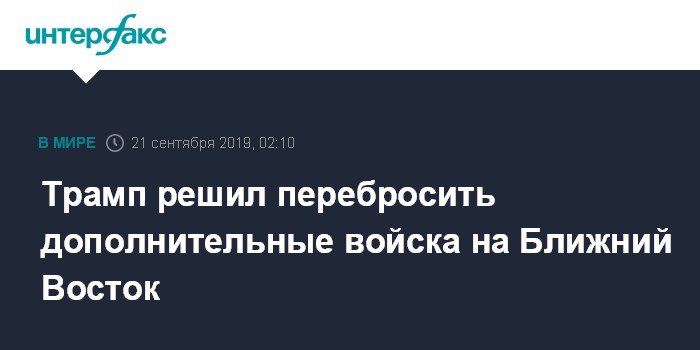 Москва. 21 сентября. INTERFAX.RU - Президент США Дональд Трамп одобрил отправку на Ближний Восток дополнительных войск, сообщил в субботу глава Пентагона Марк Эспер.
