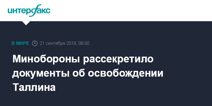 Москва. 21 сентября. INTERFAX.RU - К 75-й годовщине освобождения столицы Эстонии Таллина от фашистов на сайте Минобороны РФ открылся мультимедийный раздел с рассекреченными документами из фондов Центрального архива военного ведомства, сообщило Минобороны в субботу.