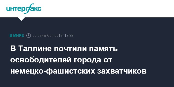 Москва. 22 сентября. INTERFAX.RU - Представители общественности Эстонии и сотрудники посольства России возложили в воскресенье в Таллине венки и цветы к подножью Бронзового солдата на Военном кладбище и на могилы советских воинов в память об освобождении столицы от немецко-фашистских захватчиков.