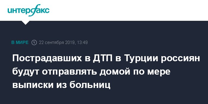 Пострадавших в ДТП в Турции россиян будут отправлять домой по мере выписки из больниц