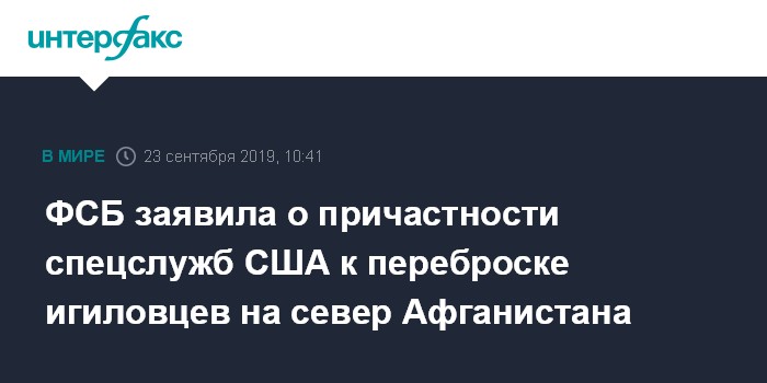 Москва. 23 сентября. INTERFAX.RU - У ФСБ есть информация о причастности американских спецслужб к переброске боевиков "Исламского государства" (ИГ, запрещено в России) на север Афганистана, заявил руководитель 5-й Службы ФСБ России Сергей Беседа на совещании в Казани.