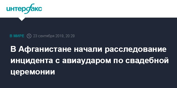 Москва. 23 сентября. INTERFAX.RU - Президент Афганистана Ашраф Гани поручил властям провинции Гильменд направить в уезд Муса-Кала следственную группу для расследования обстоятельств гибели мирных жителей во время авиуадара по свадебной процессии, сообщил вечером в понедельник пресс-секретарь главы афганского государства Седик Седикки.