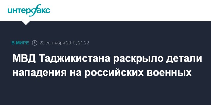 Москва. 23 сентября. INTERFAX.RU - Детали нападения на российских военных на юге Таджикистана официально обнародованы в понедельник министерством внутренних дел республики.