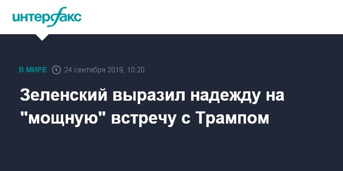 Москва. 24 сентября. INTERFAX.RU - Президент Украины Владимир Зеленский рассчитывает на продуктивную встречу с президентом США Дональдом Трампом.
