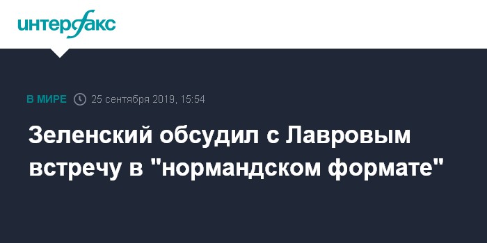Москва. 25 сентября. INTERFAX.RU - Президент Украины Владимир Зеленский во время короткого общения с министром иностранных дел России Сергеем Лавровым говорил ним о подготовке встречи в "нормандском формате", сообщил "Интерфаксу" источник в Офисе президента Украины.