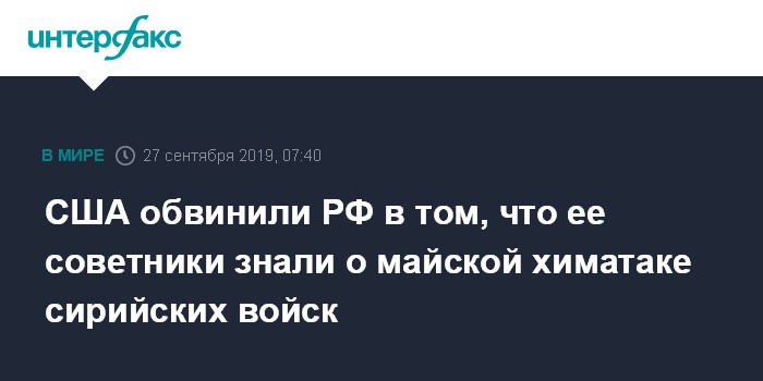 США обвинили РФ в том, что ее советники знали о майской химатаке сирийских войск