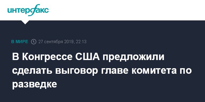 Москва. 27 сентября. INTERFAX.RU - Член палаты представителей США республиканец Энди Бигс представил проект резолюции, призывающую сделать выговор председателю комитета по разведке Адаму Шиффу, сообщает в пятницу издание The Hill.