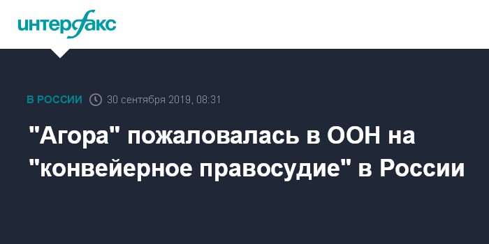 "Агора" пожаловалась в ООН на "конвейерное правосудие" в России