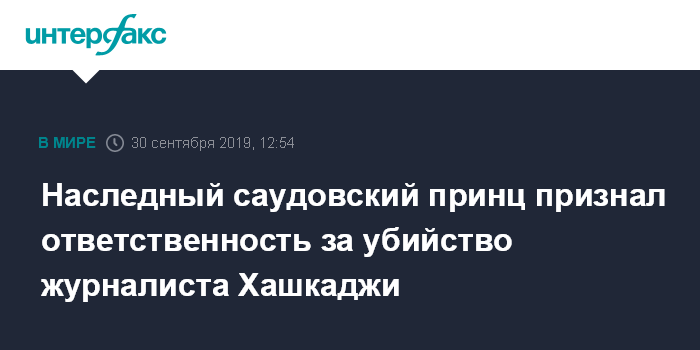 Москва. 30 сентября. INTERFAX.RU - Наследный принц Саудовской Аравии Мухаммед бен Салман в интервью телеканалу CBS назвал убийство саудовского журналиста Джамаля Хашкаджи гнусным преступлением. Он заявил, что "берет на себя ответственность (за убийство - ИФ) как лидер Саудовской Аравии", но в то же время отметил, что не отдавал приказа убить саудовского журналиста.