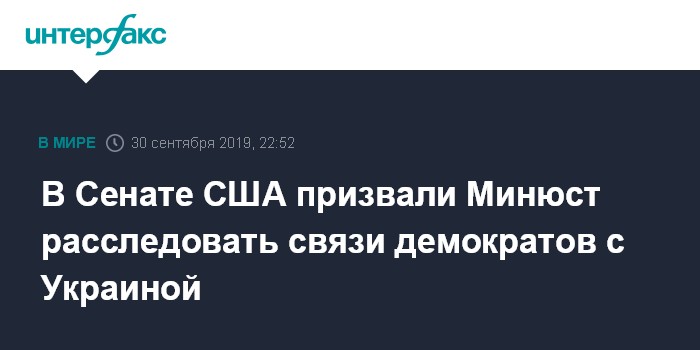 "Минюсту еще предстоит проинформировать Конгресс и общественность о том, начал ли он расследование по поводу связей и сотрудничества между правительством Украины и лицами, связанными с предвыборной кампанией (кандидата от демократов - ИФ) Хиллари Клинтон или Национальным комитетом Демократической партии... подобные подозрения заслуживают должного и внимательного изучения", - говорится в письме сенаторов.