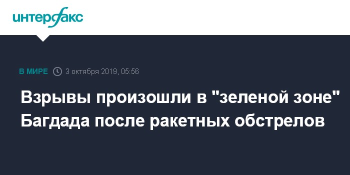 Москва. 3 октября. INTERFAX.RU - Взрывы прогремели внутри "зеленой зоны" в столице Ирака после падения двух ракет, сообщает Al Arabiya.