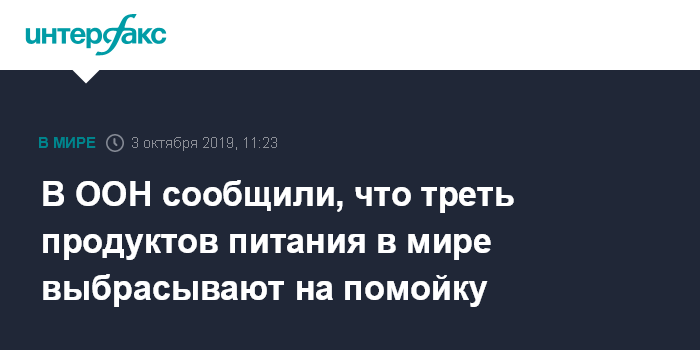Москва. 3 октября. INTERFAX.RU - По данным Всемирной продовольственной программы (ВПП - основана в 1963 году как орган по продовольственной помощи в системе ООН), на помойке оказывается треть всех продуктов питания на планете.
