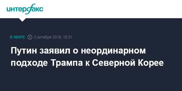 Москва. 3 октября. INTERFAX.RU - Позиция президента США Дональда Трампа по КНДР демонстрирует его способность к неординарным решениям, считает российский лидер Владимир Путин.