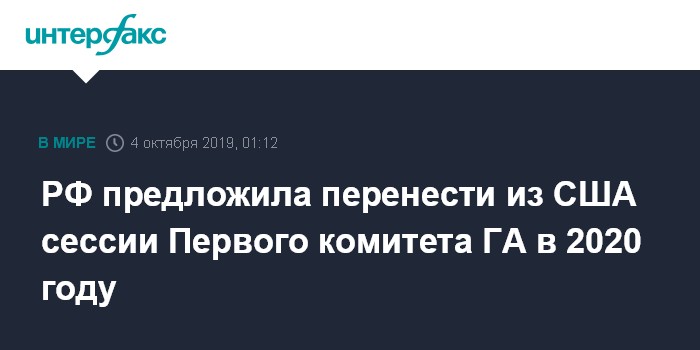 РФ предложила перенести из США сессии Первого комитета ГА в 2020 году