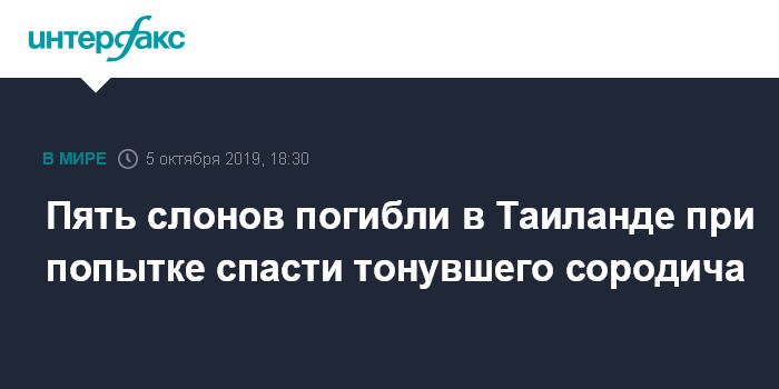 Москва. 5 октября. INTERFAX.RU - Шесть слонов погибли в тайском национальном парке Кхауяй, сообщает в субботу телеканал BBC News.